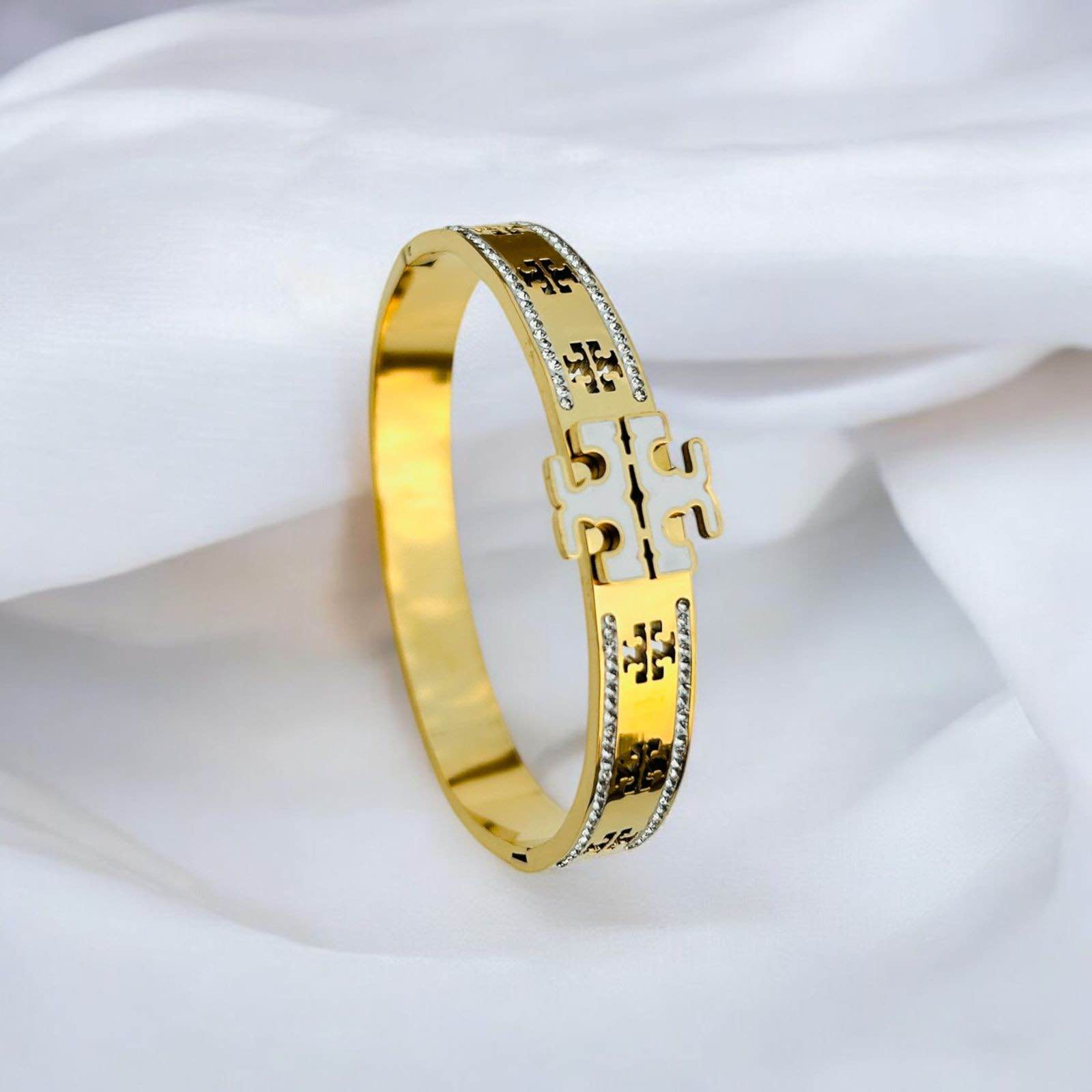 This sleek bangle showcases the strength and style of stainless steel. It’s a modern and durable accessory that effortlessly elevates your look with a touch of sophistication.